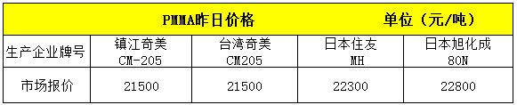 PMMA市場交投氣氛平平。貿易商隨行就市,終端詢盤寥寥無幾,下游堅持剛需。
