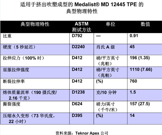 Medalist MD 12445 化合物的肖氏 A 級(jí)強(qiáng)度為 45,但 Teknor Apex 還能對(duì)于特殊的應(yīng)用程序開發(fā)出更綿軟或更硬實(shí)的化合物。這類新化合物能夠根據(jù)放射線或環(huán)氧乙烷開展消毒殺菌。它主要表現(xiàn)出高質(zhì)量的回彈性工作能力。(請(qǐng)參照物理學(xué)特點(diǎn)數(shù)據(jù)分析表。)