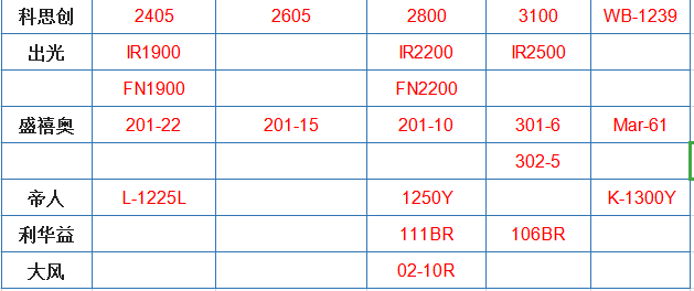 三養PJ料與中國市場常規流通的PC型號對照一覽表