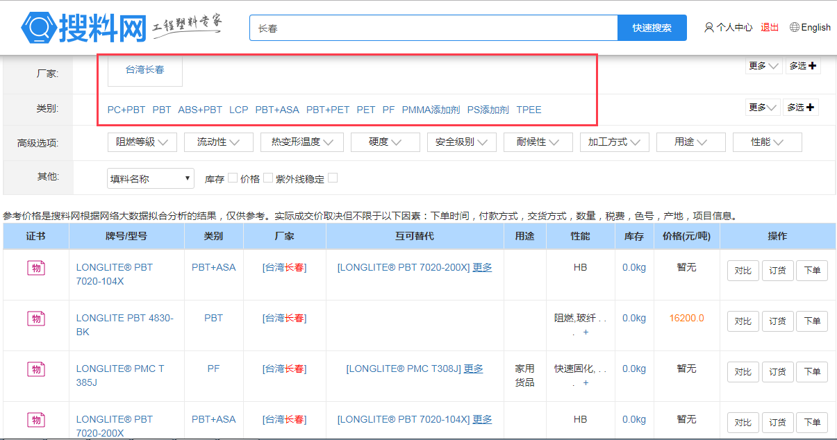 為便于中國客戶查閱、對比及尋找替代型號,目前臺灣長春公司所有的工程塑料型號(包括但不限于PBT)搜料網都有收錄,并且進行了專業、準確的漢化。