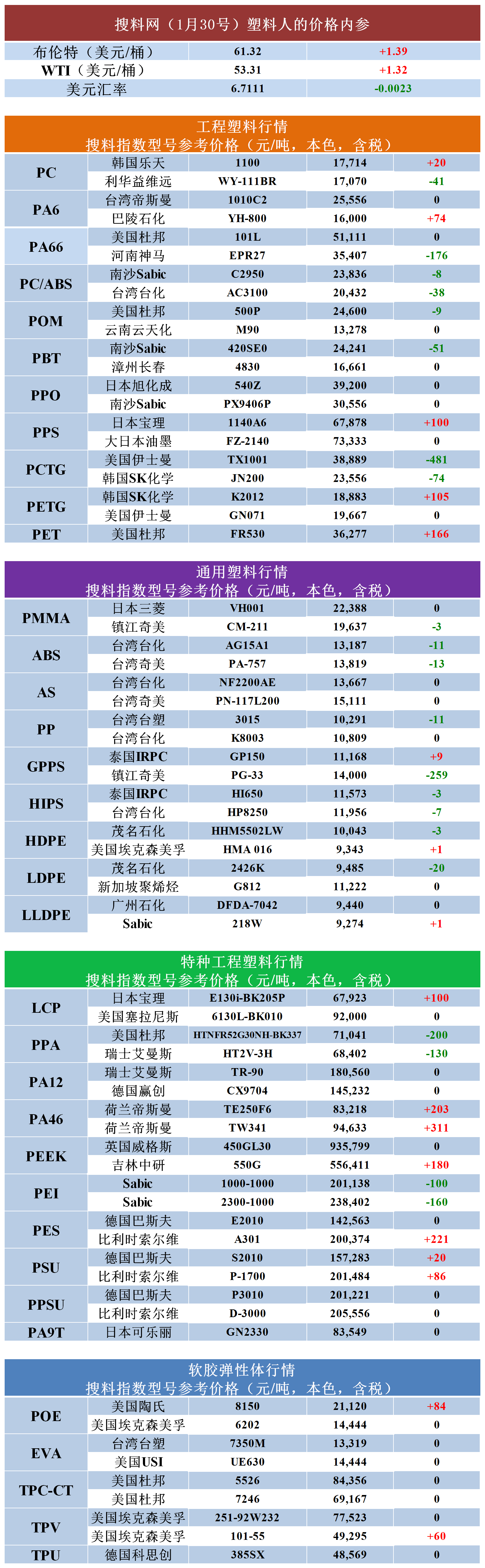 搜料 | 塑料價錢內參(2019.1.30)