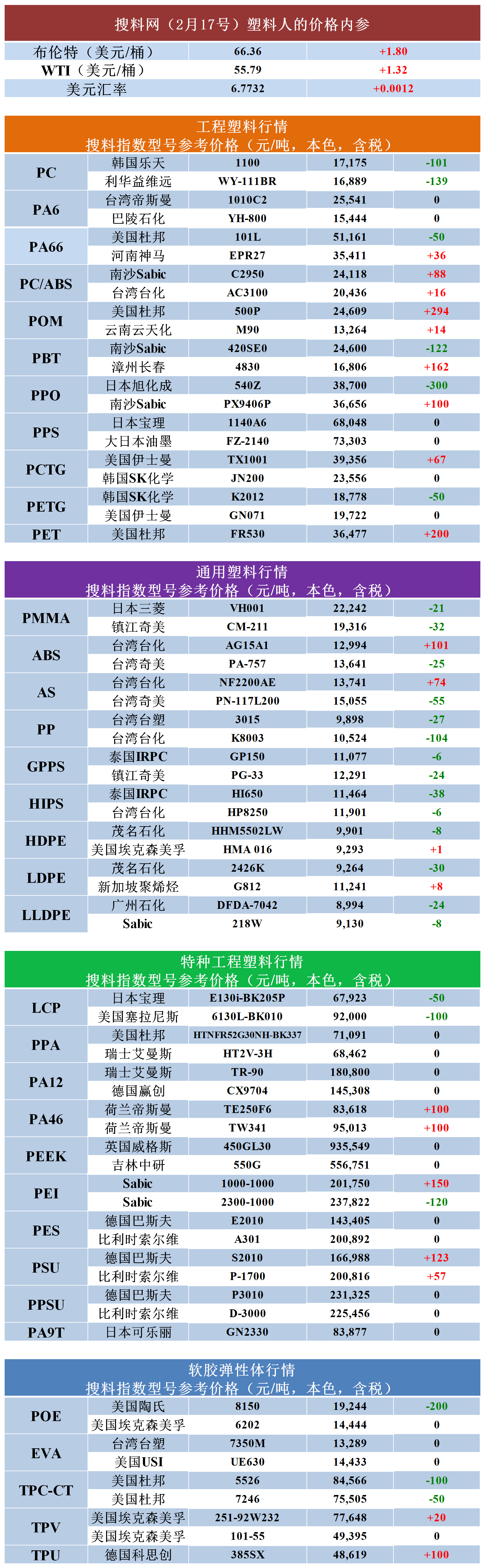 搜料 | 塑料最新價錢內參(2019.2.18)