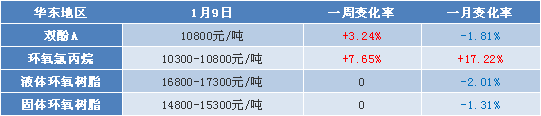 元旦后,雙酚A和環氧氯丙烷價格堅定頻繁