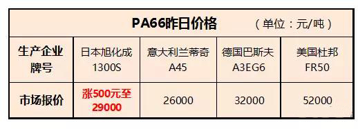 PA66日本旭化成1300S日漲500元至29000元/噸!