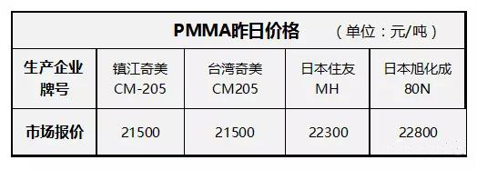 PMMA市場(chǎng)報(bào)價(jià)基本走穩(wěn),商家隨行小幅讓利,終端補(bǔ)倉謹(jǐn)慎。