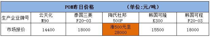 POM市場價格大穩小動,商家隨行出貨,觀察市場反應;下游工廠按需采購,交投氛圍清淡。