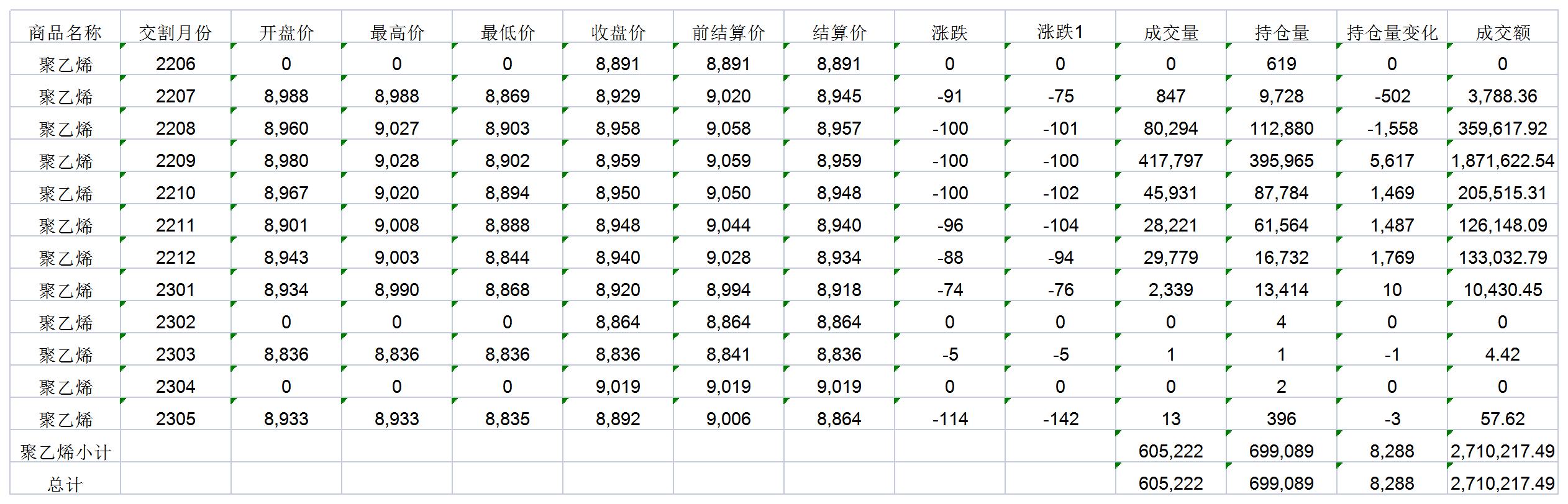 大連商品交易所6月14日PE行情表