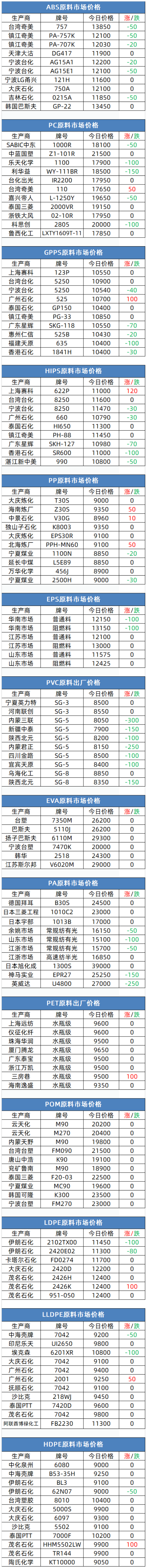華南塑價(jià)弱勢(shì)震蕩!杜邦PE全線上漲,汕頭市場(chǎng)PP全線下跌(20
