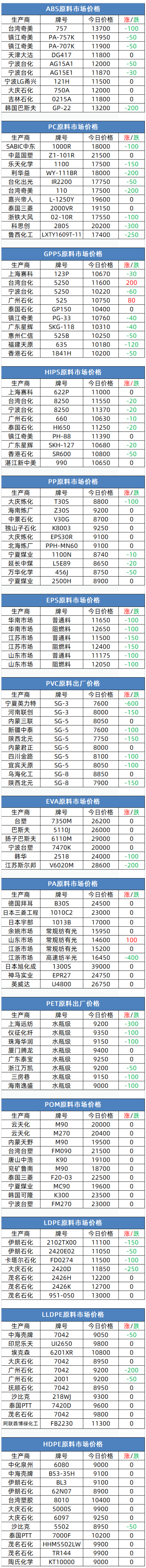 6月22日 國內ABS/PS/PP/PVC/PA塑料行情報價