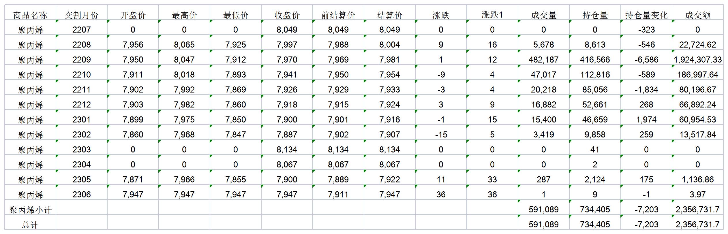 大連商品交易所7月14日PP行情表