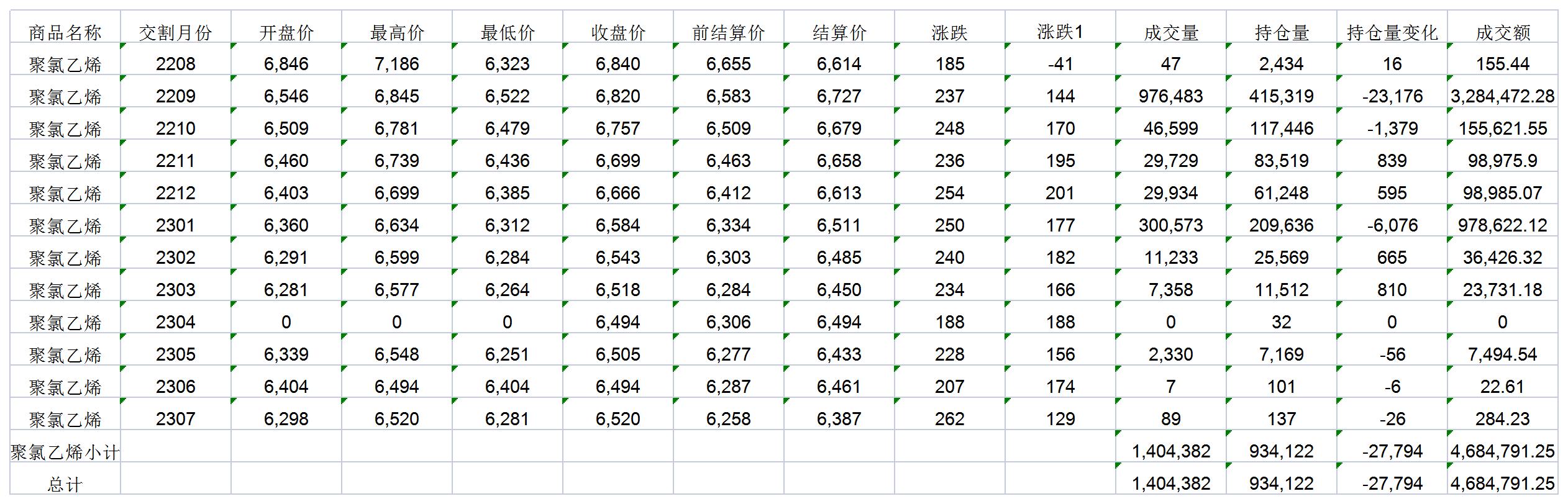 大連商品交易所8月8日PVC行情表