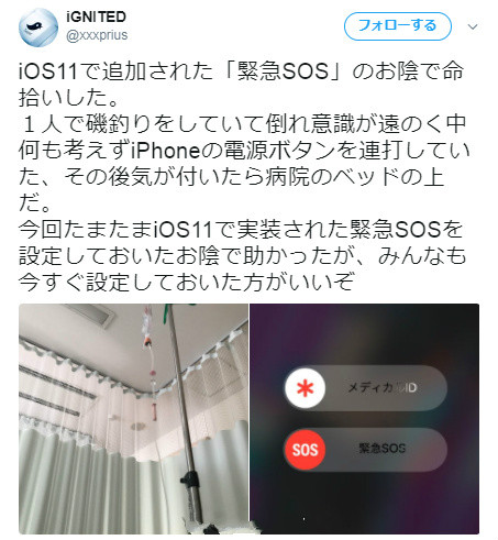 用iOS11新追加的“SOS緊急聯絡”功用撿回了一條命