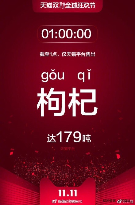 雙十一活動一個小時,售出枸杞達(dá)179噸