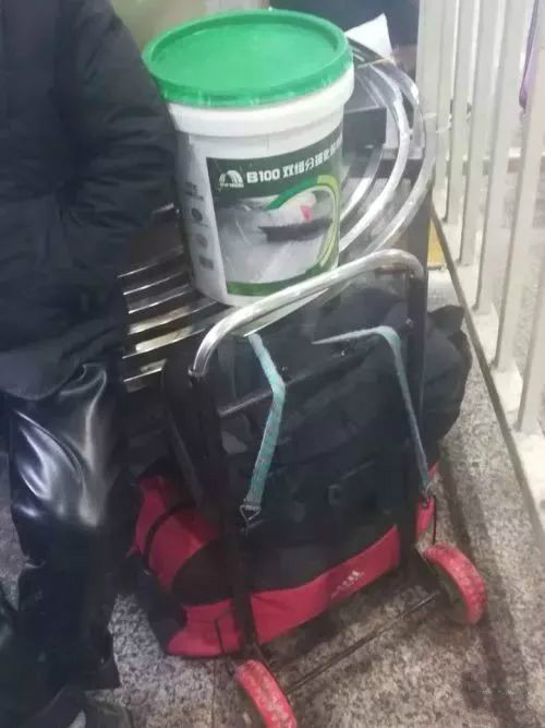 一位安徽宿州乘客說,他去年帶了100多個這樣的涂料桶回家,都是工地撿來的,怎么拎上火車?每個兄弟幫忙拿幾個,疊起來拎,拿到家一個養豬的親戚就要去了50個,朋友街坊鄰居分分,最后自己還剩四五個。