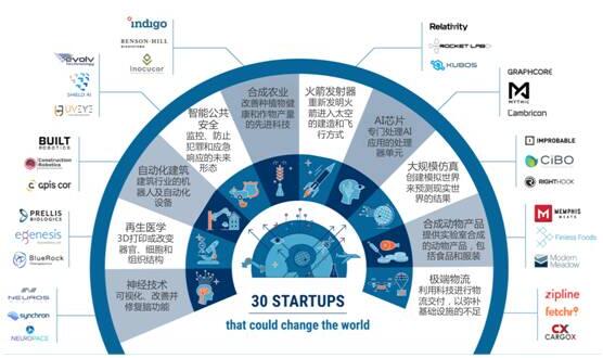 CB Insights挖掘了很多創投數據和媒體信息后,總結出了影響世界的十大顛覆性領域,涵蓋了:神經技術、再生醫學、自動化建筑、智能公共安全、合成農業、火箭發射器、AI芯片、大規模仿真、合成動物產品和極端物流,并選出了這10個領域中最有可能改變世界的30家初創企業。