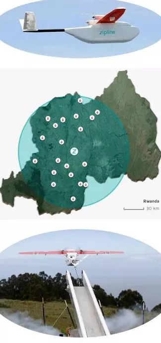 Zipline建造固定翼醫療無人機,并進行空運服務,將醫療用品投放到無法通過陸路進入的地區的診所或醫院。