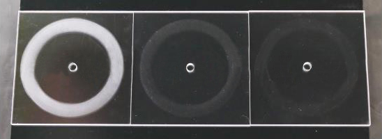 該圖為PC樹脂表層耐磨損耗實驗(1000轉(zhuǎn))后的刮痕較為。(左:無鍍層;中間:濕試法;右:低溫等離子CVD法)