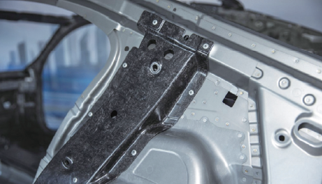 寶馬7 系列產品的碳纖維材料塊狀模塑膠提高C 柱(圖片由寶馬汽車公司出示)。