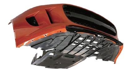 捷豹F 型保險桿和車身底板部件頂視圖。全部部件由POLYTEC 企業的不一樣各個部門選用不一樣的技術性生產制造(圖片由POLYTEC 集團公司出示)。