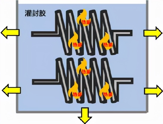 基于有機硅具有獨特的物理化學性能及出色的耐老化等性能,目前較為普遍的熱管理方案是使用具有一定導熱系數的有機硅灌封膠將電磁感應元器件進行整體灌封。