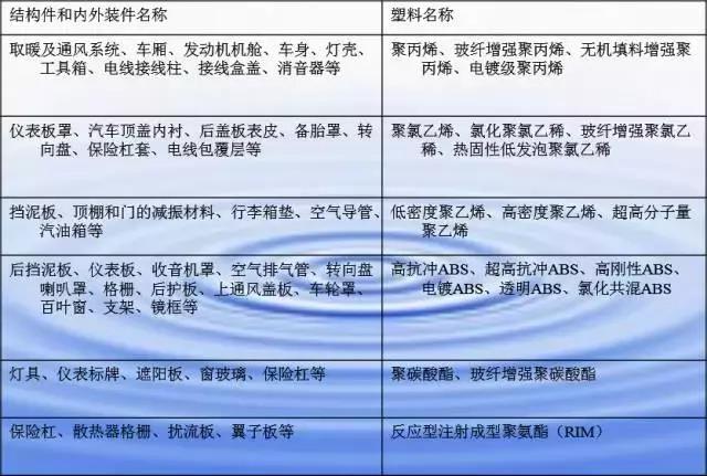 小汽車零部件和內外裝飾設計件的塑料種類以及運用案例: