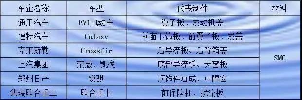 零部件:包含前端開發支撐架、保險桿框架、坐椅框架、木地板等,其目地取決于提升制品的設計方案可玩性、生態性和一致性。關鍵應用高強度SMC、GMT、LFT等原材料。
