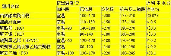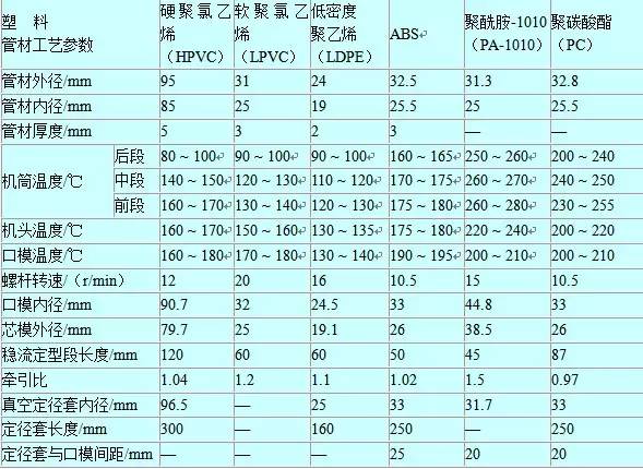 塑料管道擠出成型工藝參數