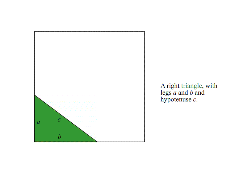 這個定理是我們對幾何學理解的基礎。它描述了平面上直角三角形的側面之間的關系:將短邊的長度a和b平方,將它們加在一起,并得到長邊長度的平方,c。