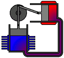 第二個熱力學定律表明,孤立系統的熵不會降低,因為孤立的系統總是朝向熱力學平衡發展,即具有最大熵的狀態。動畫顯示了一種被稱為熱力學第二定律的Alpha型斯特林引擎。