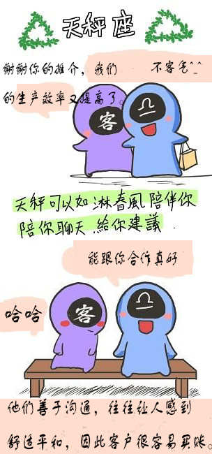 已有人閱讀此文 - -天秤座常常追求和平和諧的感覺,他們善于交談,溝通能力極強(qiáng)是他們最大的優(yōu)點(diǎn)。他們的溝通方式往往讓人感到舒適平和,因此能收到不錯(cuò)的客戶評價(jià)。
