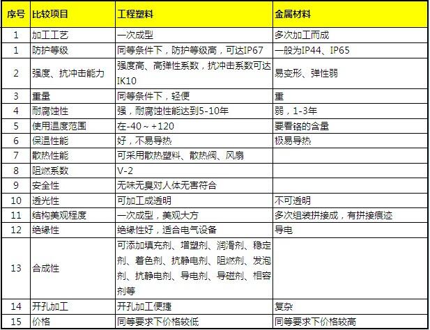 以光伏產業為例,目前歐美發達國家在光伏設備塑料匯流箱的使用比例已達53%,而國內才剛剛起步,比例僅為16%。而就在兩年前這個比例還不足5%。由于匯流箱都用于戶外等惡劣環境下,對箱體抗腐蝕性、使用壽命、抗沖擊、耐候性、以及對箱體內元器件保護防護等級等核心要求非常高。相比金屬箱體,工程塑料箱體的抗腐蝕性是金屬的2倍,使用使用壽命是金屬的2~3倍,抗沖擊性和耐候性能均超過金屬箱體,防護等級比金屬箱體提高22%,可達IP67。所以,目前國內光伏廠商均開始研制并使用以工程塑料為主的匯流箱,相信不用幾年,可跟上或超過金屬箱的使用比例。