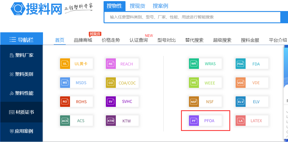 如果你想查詢某些牌號是否符合PFOA指令,可以上搜料網免費查詢。