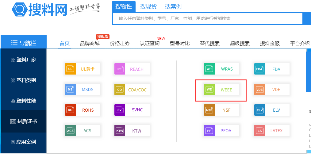 如果你想查詢某些牌號(hào)是否符合WEEE,就上搜料網(wǎng)。