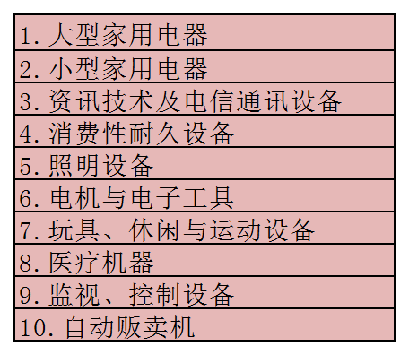 WEEE指令案適用于以下電子電氣產(chǎn)品:
