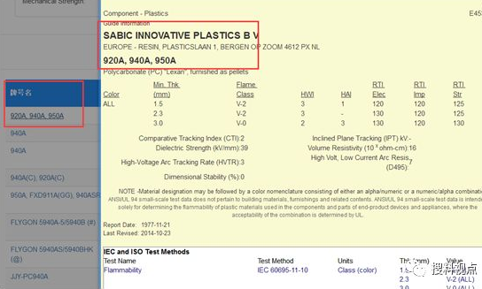 Min.Thick.試片最小厚度單位為mm。在上述黃卡中,試片厚度為3mm時,難燃性為5VA。試片厚度為1mm時,難燃性為5VB。