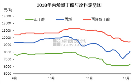 同一時期,自上而下的反彈強勢,原料丙烯可做優秀代表參考,丙烯反彈迅速擠占了下游反彈滯緩產品的利潤,丙烯酸丁酯裝置進入虧損的運行狀態。