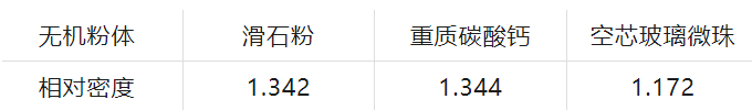 無機粉體的相對密度大都在2.7以上,尤其以硫酸鋇的相對密度4.7最為明顯,這樣就大大增加了復合材料的密度。為此行業一直在開發各類減輕質量的技術,如選用空芯化無機粉體為玻璃微珠、合成硅酸鈣等。
