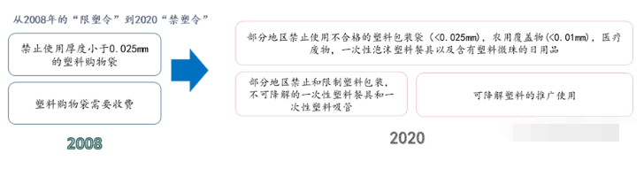中國可降解塑料領域的“限塑令”到“禁塑令”的政策變化