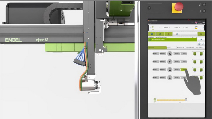 與其他品牌配備EUROMAP67或者JIS接口的機械手相比,ENGEL機械手的最大優勢在于完全集成在ENGEL注塑機系統中。通過注塑機的控制系統能夠直接控制機械手動作,實現注塑機與機械手之間的無縫連接;控制系統能夠通過同步運行、多級動態、智能振動控制等功能大大縮短生產周期時間,使生產效率最大化;高效控制、維護控制能夠降低硬件損耗,延長運行壽命;真空控制能使企業氣能消耗最多減少60%以上。其中,同步運行能夠使機械手取件跟隨模具開合模或模具頂桿一起動作,通過減少取件時間來達到減少整個生產周期的目的。智能振動控制是機械手通過軟件對注塑機振動、夾具動作等外部干擾的主動補償來改善機械手的重復定位精度,這對于精密接插件及埋入動作的精確度有很大提高,并減少振動對周期時間的影響,使ENGEL機械手在汽車、電子行業表現卓越。這些優勢目前只有通過ENGEL集成系統才能實現。