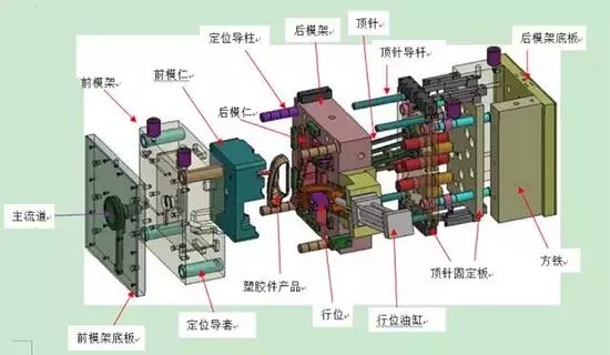 注塑模具由后模和定模兩一部分構成,后模安裝在注入成形機的挪動模板上,定模安裝在注入成形機的固定模板上。在注入成形時動模與定模合閉組成澆筑系統軟件和型腔,出模時動模和定模分離出來便于取下塑料產品。為了更好地降低繁雜的沖壓模具和生產制造勞動量,注塑模大多數選用了規范模胚。