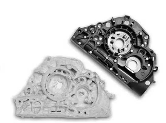 圖 分解反應前后左右的注入成型件。淺色系是環氧樹脂點燃掉后由長纖維產生的內部框架,該框架保存了部件的樣子。為了更好地在LFRT成型全過程中維持纖維的長短,有三個關鍵層面必須考慮到:塑料機、部件和沖壓模具及其生產加工標準。