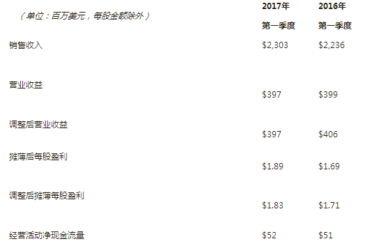 未來展望2017年全年度銷售業績,Mark Costa表明:“我們在2017年獲得了優良的開始,第一季度銷售業績穩進。盡管全世界業務流程自然環境仍然填滿可變性,大家依然希望高使用價值的產品創新將再次完成明顯增長。除此之外大家還將不斷執行嚴苛的成本控制,標準資金管理,再次促進收益增長,進而相抵化學纖維業務流程的不好危害。雖然遭遇挑戰,大家對完成增長的一系列措施滿懷信心。大家預估2017年的調節后每股盈利增長將做到8-12%,與先前方案保持一致。”
