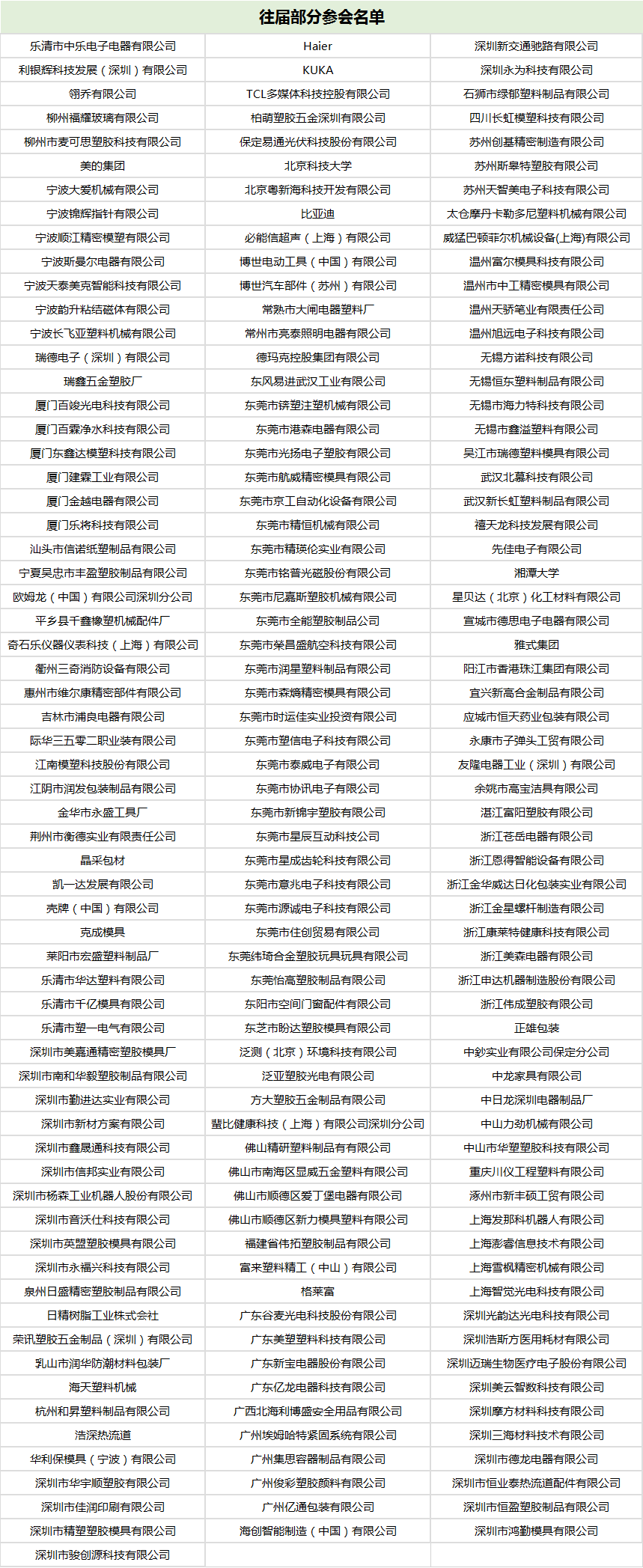 注塑產業鏈領先注塑機、模具、周邊設備及自動化、原料等企業共同參與,一次性了解整個產業鏈上下游信息,獲得更多合作伙伴信息,一個難得的大型供需互動平臺!