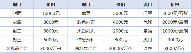 室內館地——國內企業:600元/平方米(不少于36平方米);國外企業:180美元/平方米(不少于36平方米)