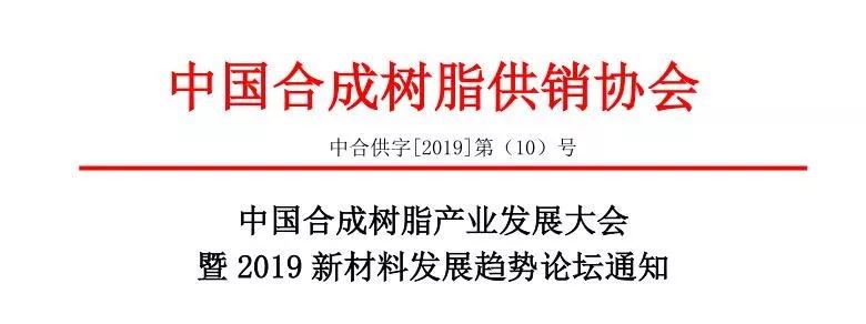 中國合成樹脂產業發展大會暨2019新材料發展趨勢論壇通知