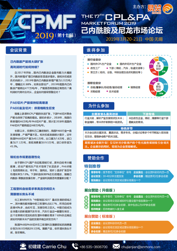 2019(第十七屆)己內酰胺及尼龍市場論壇