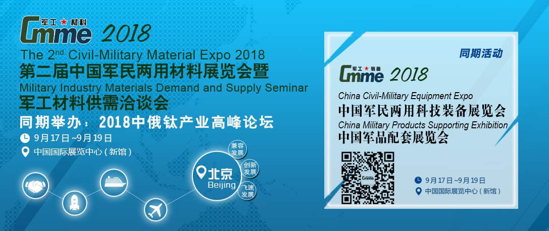 由中國和平利用軍工技術協會、中國有色金屬學會、中色協鈦鋯鉿分會聯合主辦,中國材料研究學會支持的“2018年第二屆中國軍民兩用材料展覽會”,本次展覽會現已得到了中俄高層的大力支持與重視,各龍頭、高新技術、鈦及制品企業將競相展出高端產品和前沿技術,有大批應用于軍工裝備制造新產品、新材料都將亮相于此。屆時國家工信部部司局級別領導與發改委、國防科工局、軍委科技委、海/陸/空/火箭軍裝備部、軍工科研院所、軍工集團、民口配套單位、民參軍企業、國內外材料與制造業相關單位均將參展參會,攜手推動國民經濟和國防建設同步發展,促進軍民融合事業更上一層樓,為實現“強國夢、強軍夢”貢獻力量。