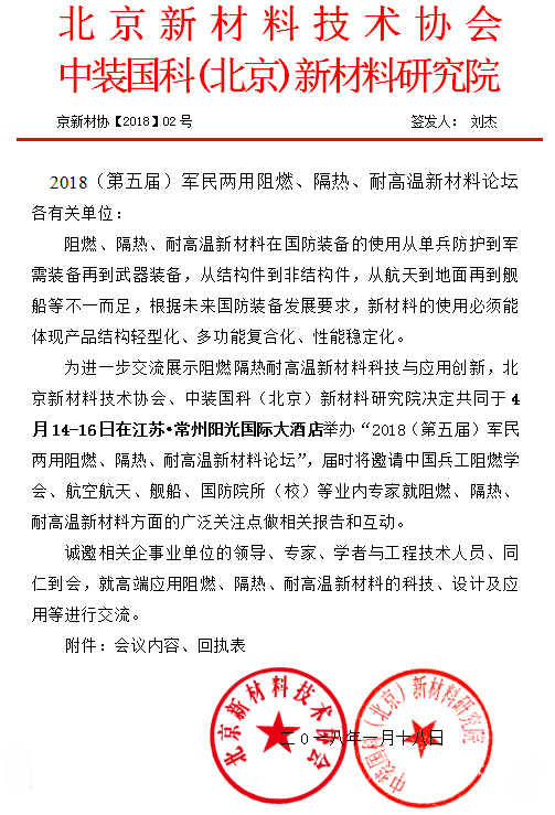 2018軍民兩用阻燃、隔熱、耐高溫新材料論壇
