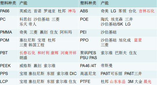 工程塑料全球主要產能