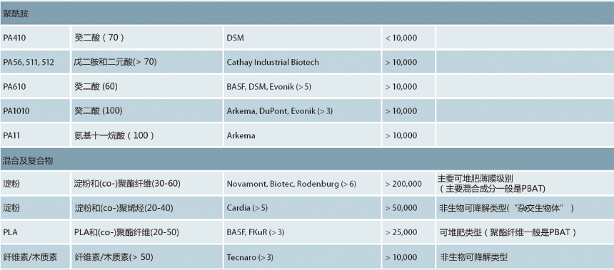 非凡的耐受力和高彈力是很多生物丙烯酸樹脂(PA)的基礎特性。與早已投放市場數十年的PA10和PA11一樣,新式PA4和PA5以其獨特特性,如溫度可靠性、耐酸類和規格可靠性,也已經吸引住銷售市場關心。傳統定義上的PA通常用以轎車行業的獨特運用,而生物PA也吸引了日用品行業,比如室外衣服、休閑鞋和眼鏡框架。關鍵高聚物制造商,如KS/英國威奇托的Invista S.a.r.l.公司、西班牙美的倫的DSM工程項目塑料公司、德國埃森的Evonik工業生產公司,為了更好地進一步擴展PA單個組成的范疇,正積極主動與各生物技術性公司進行協作,如澳大利亞/英國門洛帕克森的Calysta公司、中國上海的國泰生物高新科技比較有限公司、新加坡雪蘭莪州的Emery Oleochemicals集團公司及其澳大利亞/英國卡爾斯巴德的Verdezyne公司(見表1)。